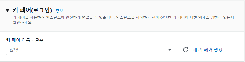 새 키 페어를 생성하는데 이때 생성한 키 페어는 나중에 사용해야 하기에 보관을 잘 해야 함