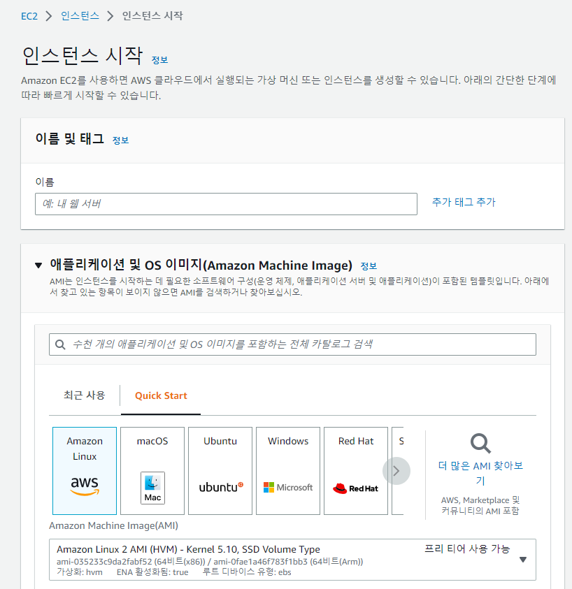 제품 - 컴퓨팅 - EC2(가상 컴퓨터 환경) - 인스턴스 시작